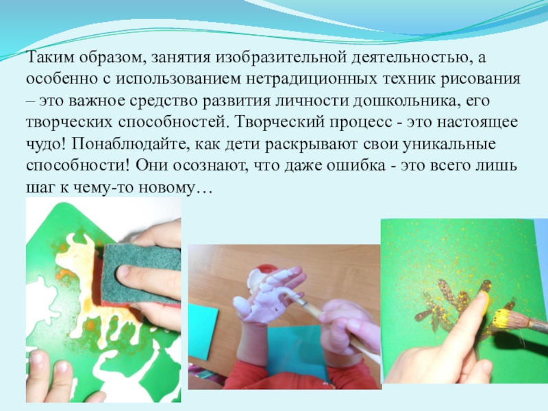 Слайд 17Таким образом, занятия изобразительной деятельностью, а особенно с использованием нетрадиционных техник