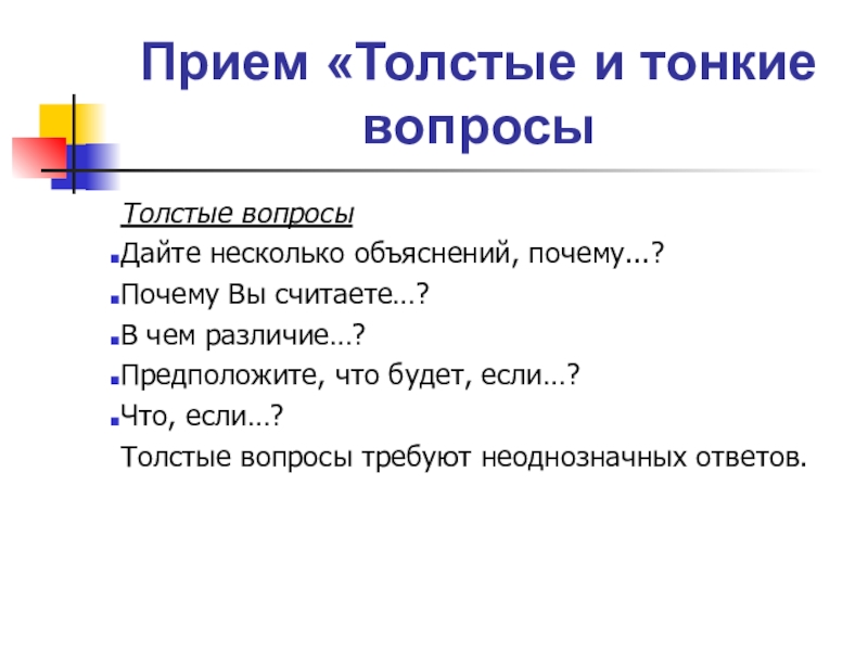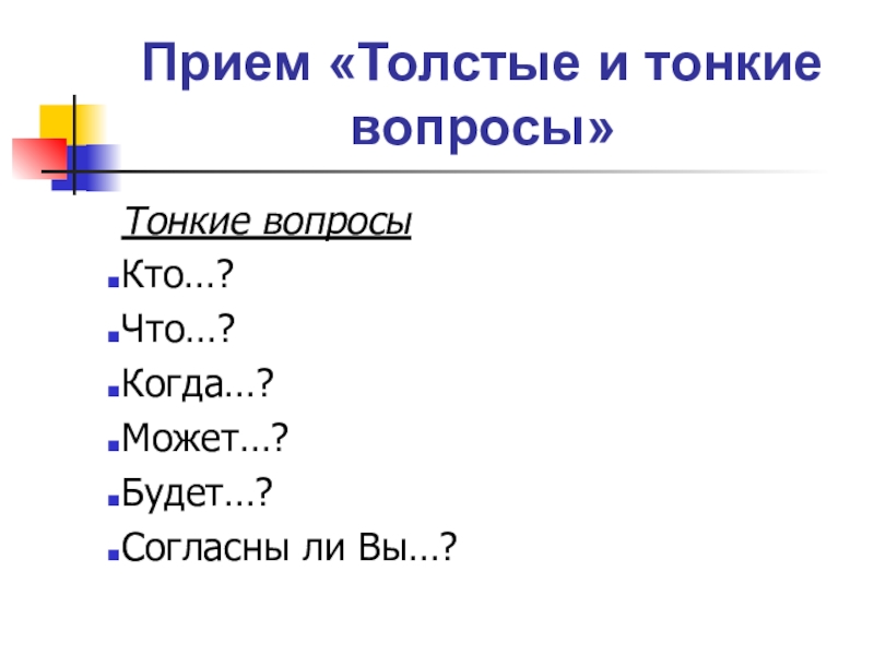 Слайд 26Прием «Толстые и тонкие вопросы»