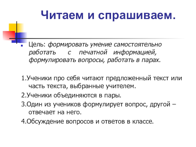 При отработке приёма необходимо указывать учащимся на качество вопросов, отсеивая неинформативные, случайные.