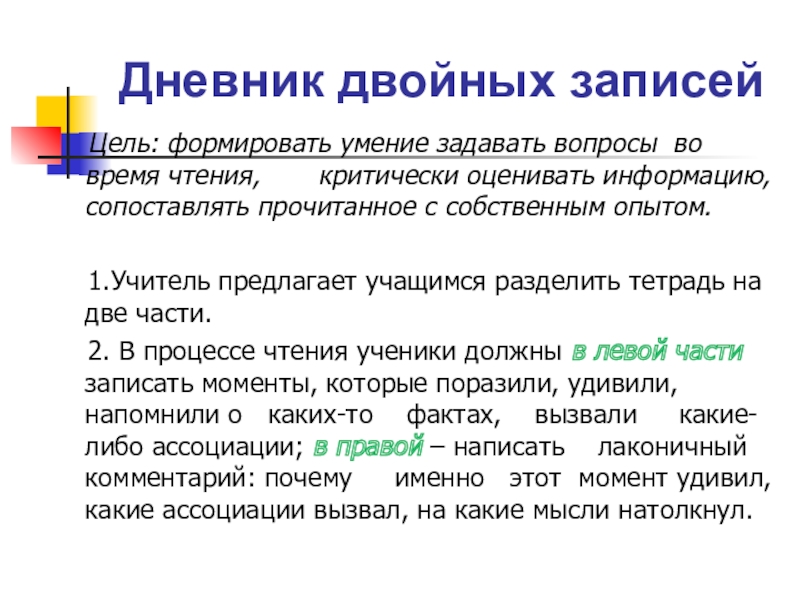 Одним из основных приёмов осмысления информации является постановка вопросов к тексту