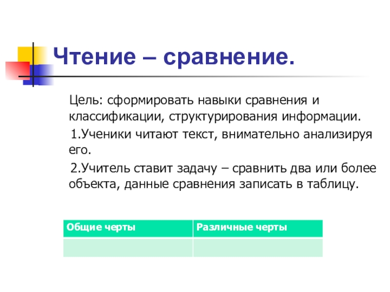 Цель: сформировать навыки сравнения и классификации, структурирования