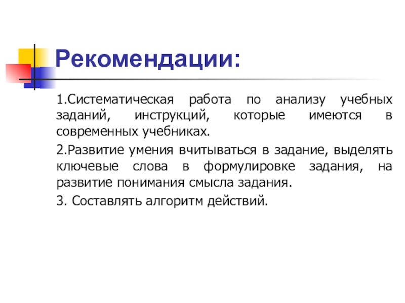 1.Систематическая работа по анализу учебных заданий, инструкций, которые имеются в современных