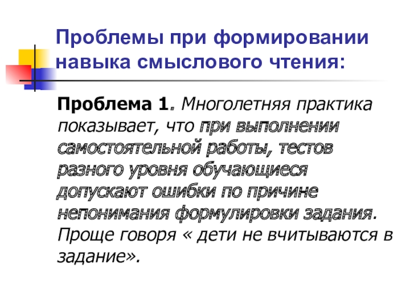 Слайд 30Проблемы при формировании навыка смыслового чтения: