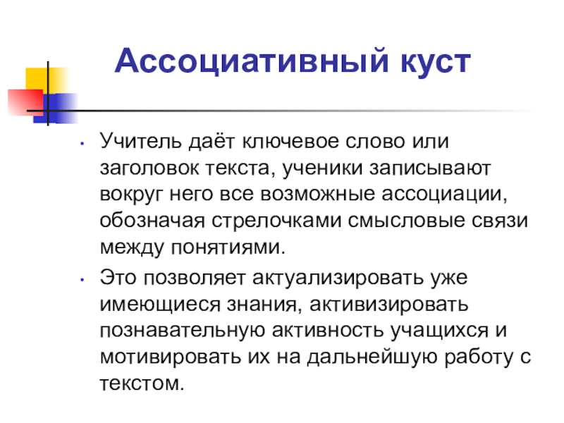 Это позволяет актуализировать уже имеющиеся знания, активизировать познавательную активность учащихся и мотивировать их на дальнейшую работу с текстом.