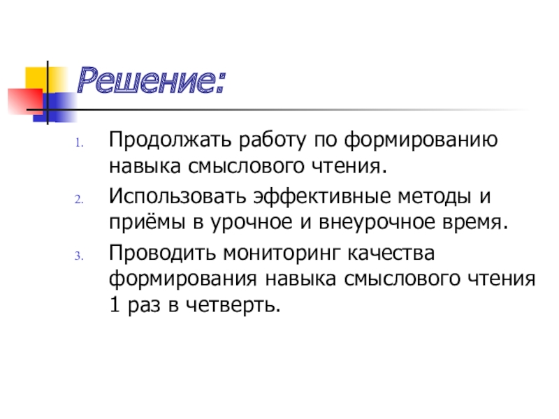 Проводить мониторинг качества формирования навыка смыслового чтения 1 раз в четверть.
