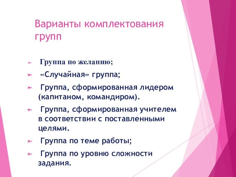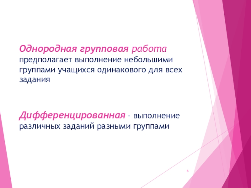 Дифференцированная - выполнение различных заданий разными группами
