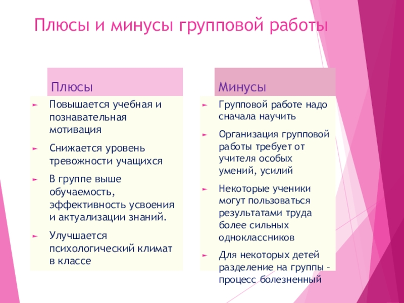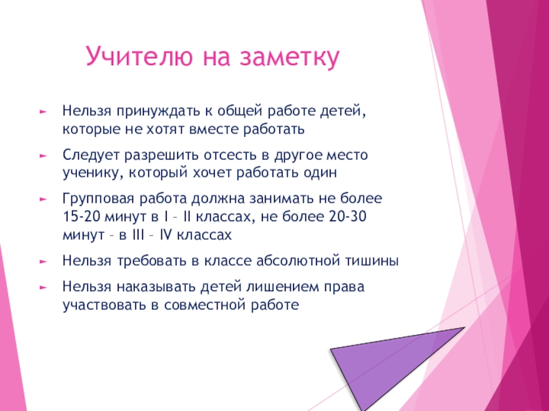 Организация групповой работы требует от учителя особых умений, усилий