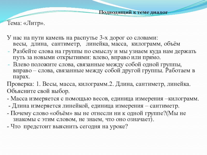 Подводящий к теме диалог
