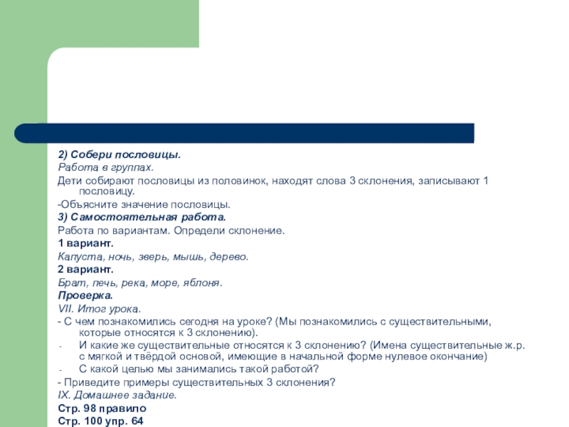 слова 3 склонения, записывают 1 пословицу.