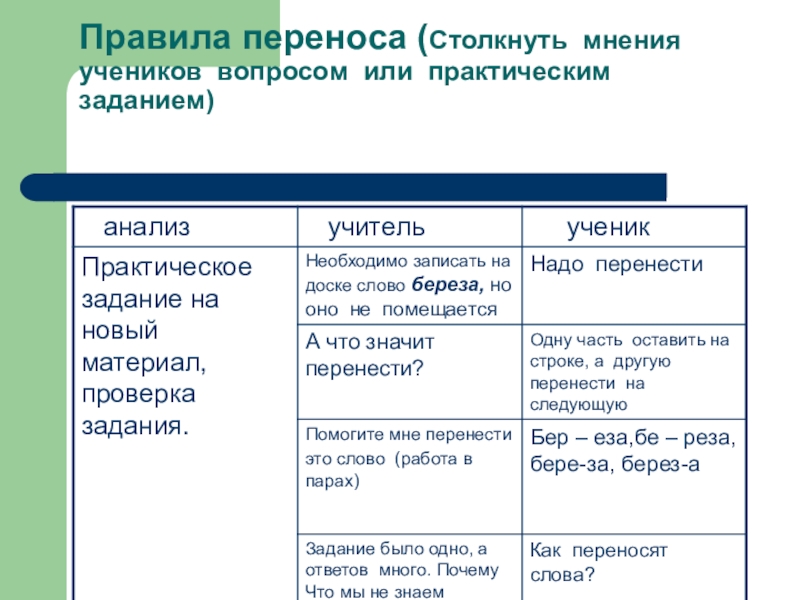 Слайд 17Правила переноса (Столкнуть мнения учеников вопросом или практическим заданием)