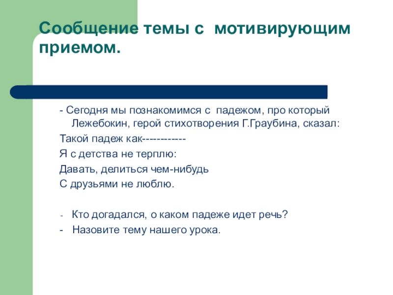 Слайд 16Сообщение темы с мотивирующим приемом.
