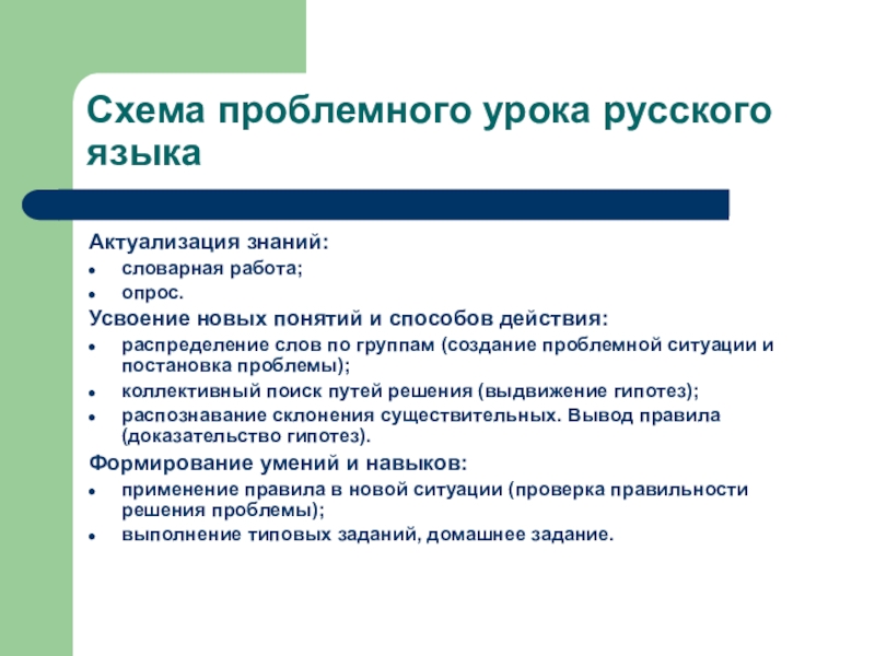 Слайд 18Схема проблемного урока русского языка