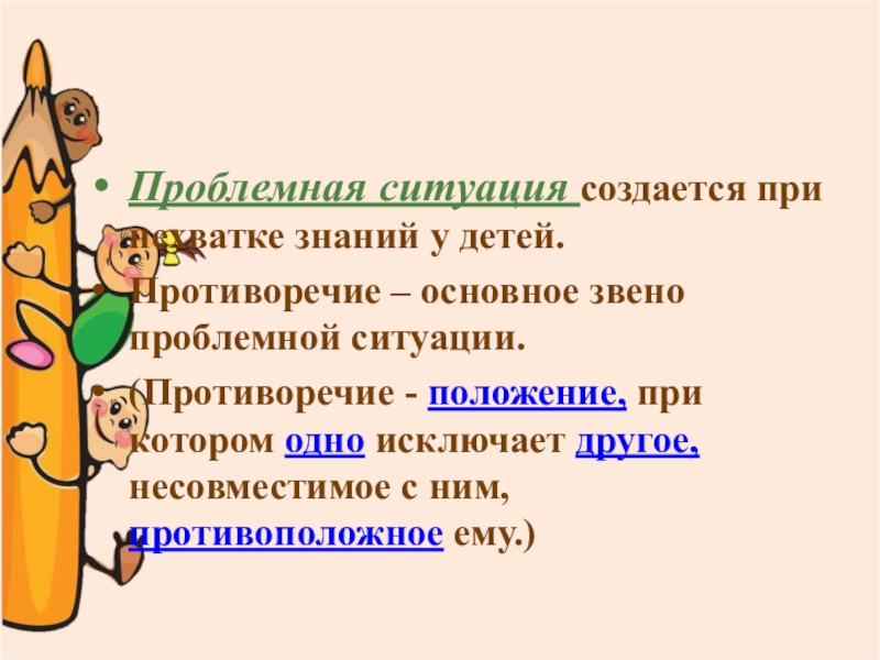 Слайд 8Проблемная ситуация создается при нехватке знаний у детей.