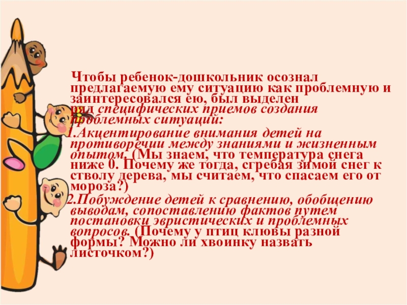 Слайд 11 Чтобы ребенок-дошкольник осознал предлагаемую ему ситуацию как проблемную
