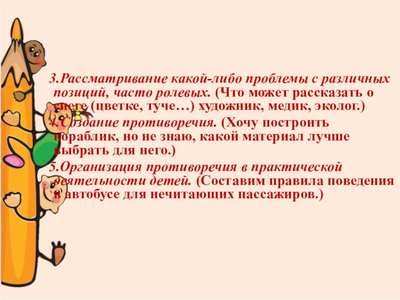 5.Организация противоречия в практической деятельности детей. (Составим правила поведения в автобусе для нечитающих пассажиров.)