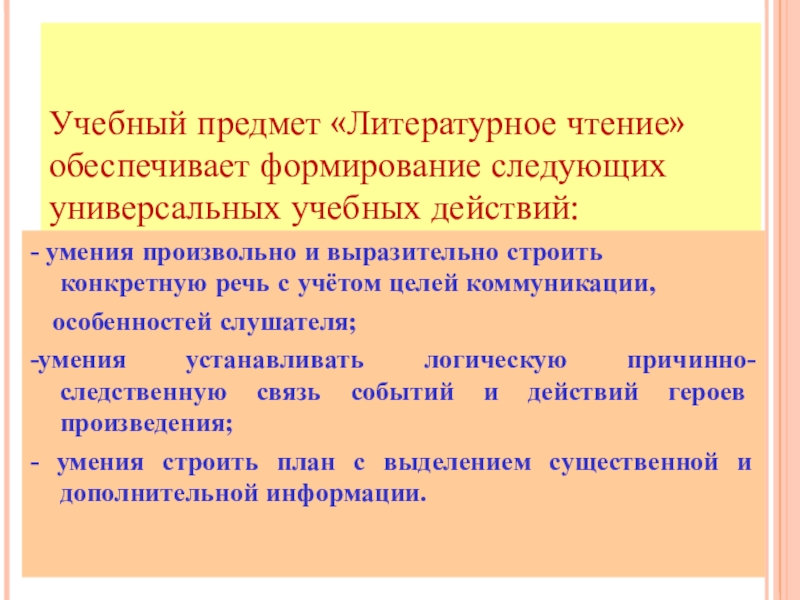 Слайд 19Учебный предмет «Литературное чтение» обеспечивает формирование следующих универсальных учебных действий: