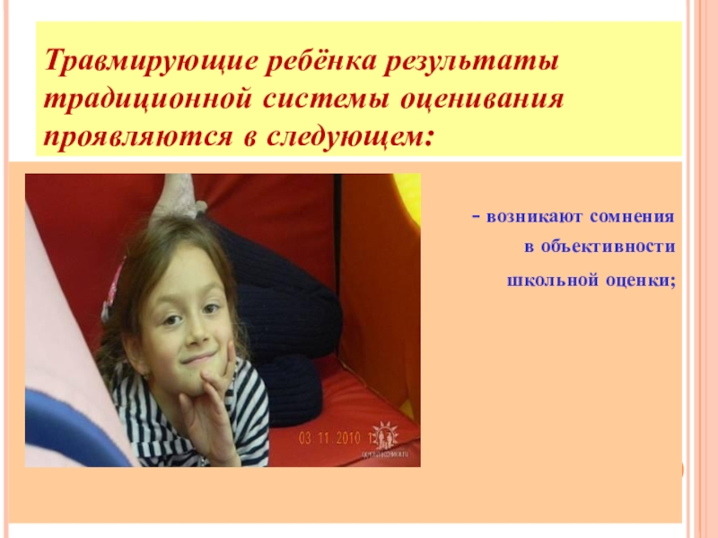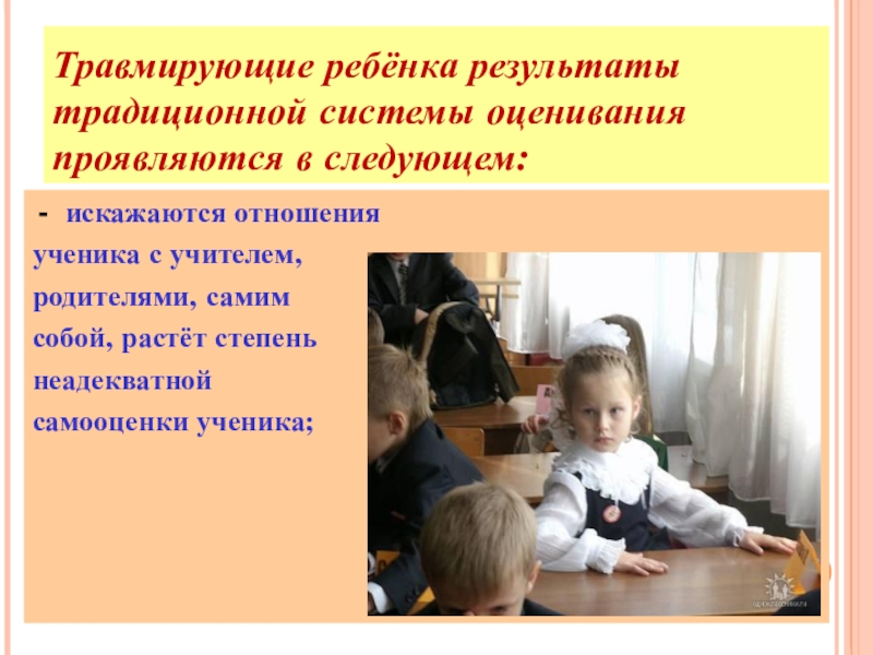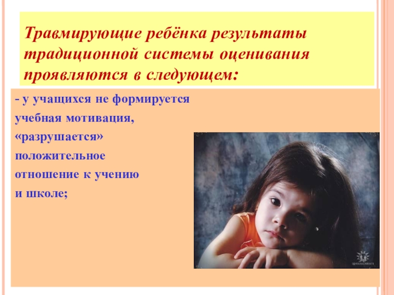 Слайд 61Травмирующие ребёнка результаты традиционной системы оценивания проявляются в следующем: