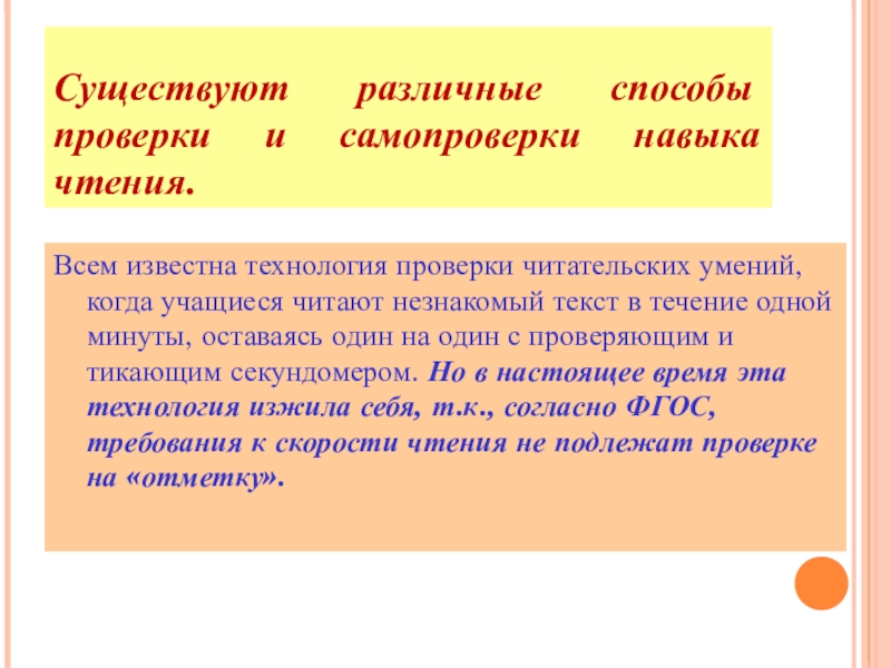 Слайд 67Существуют различные способы проверки и самопроверки навыка чтения.