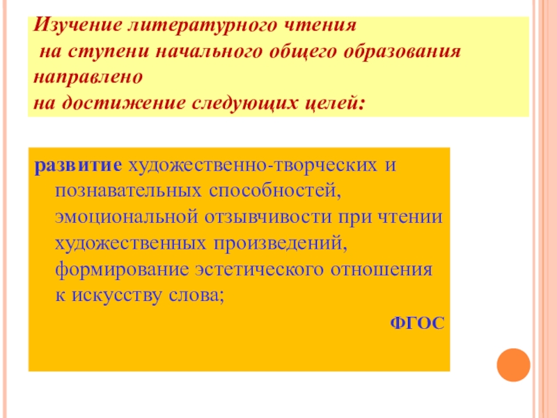 развитие художественно-творческих и познавательных способностей, эмоциональной отзывчивости при чтении художественных произведений, формирование эстетического отношения к искусству слова;