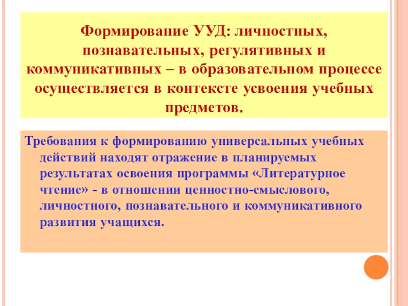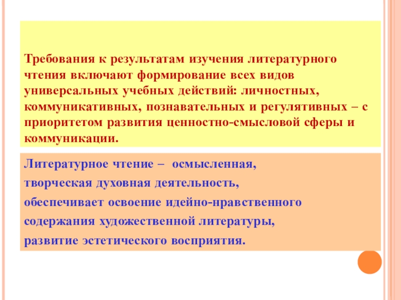 Слайд 14Требования к результатам изучения литературного чтения включают формирование всех видов универсальных