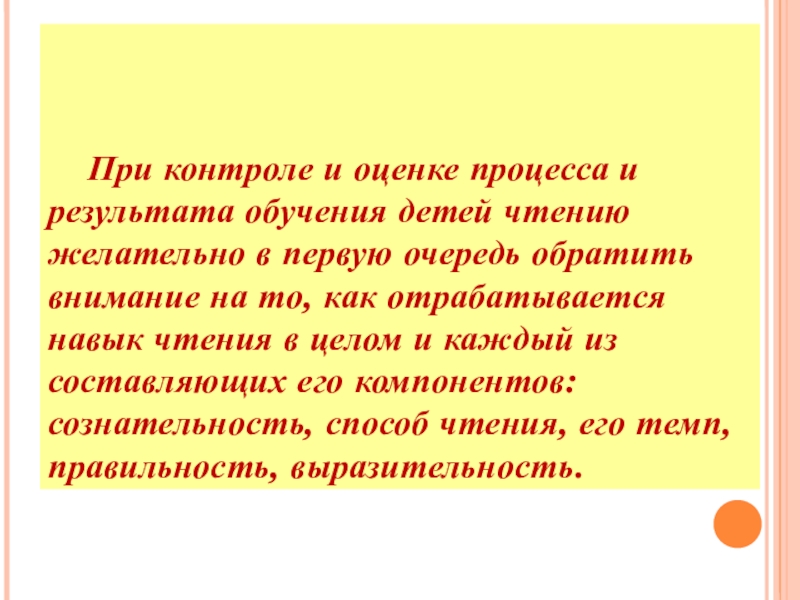 Слайд 66 При контроле и оценке процесса и результата обучения детей чтению желательно