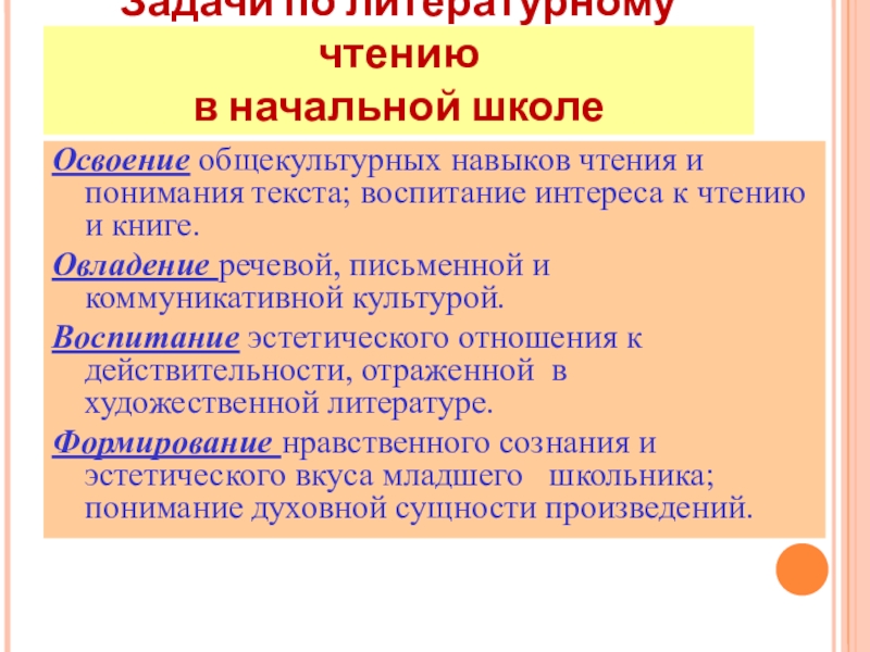 овладение навыком осознанного, беглого и выразительного чтения; формирование читательского кругозора и приобретение опыта самостоятельной читательской деятельности; совершенствование всех видов речевой деятельности;