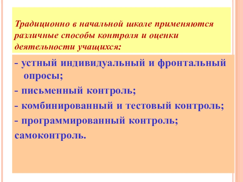 Слайд 64Традиционно в начальной школе применяются различные способы контроля и оценки деятельности