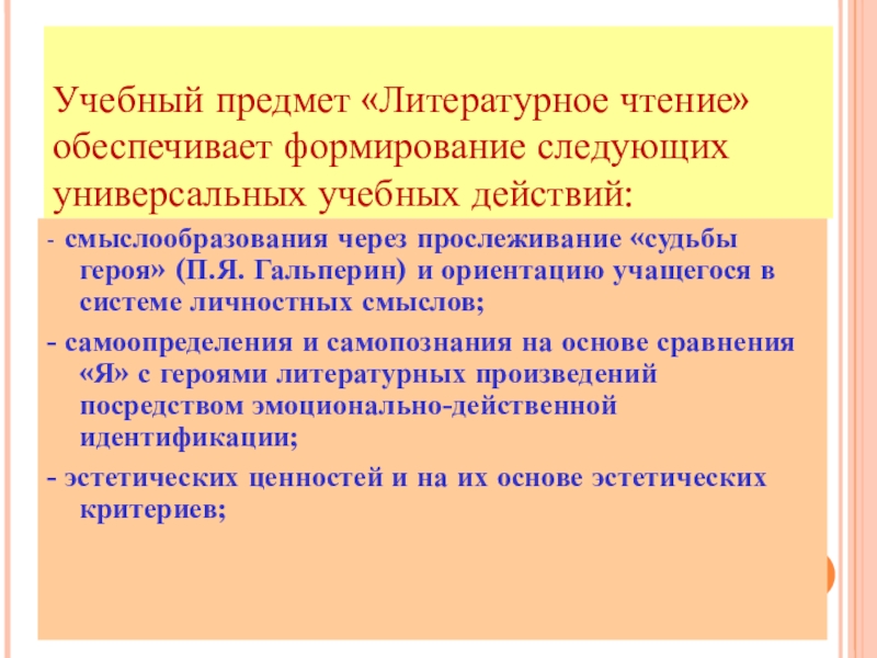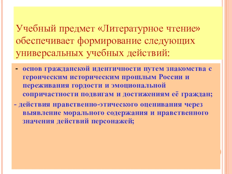 Слайд 17Учебный предмет «Литературное чтение» обеспечивает формирование следующих универсальных учебных действий: