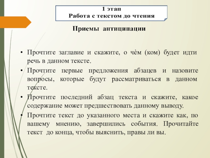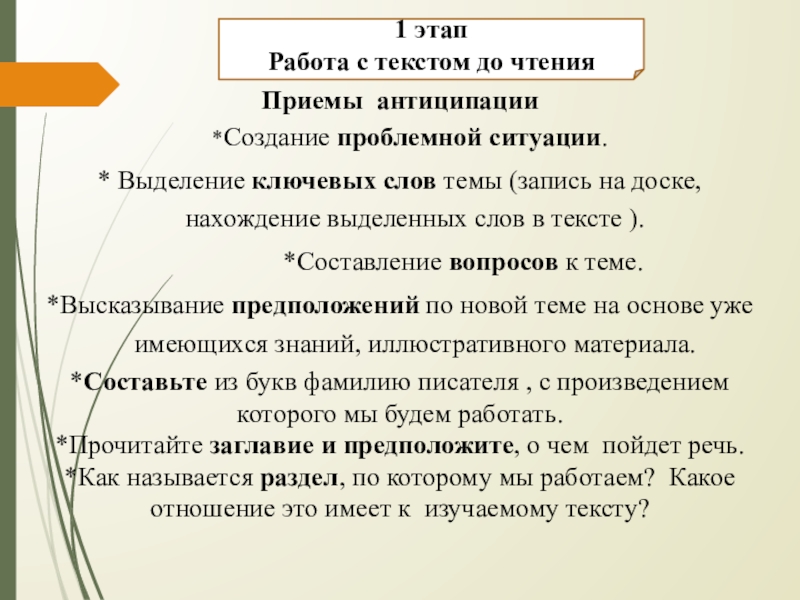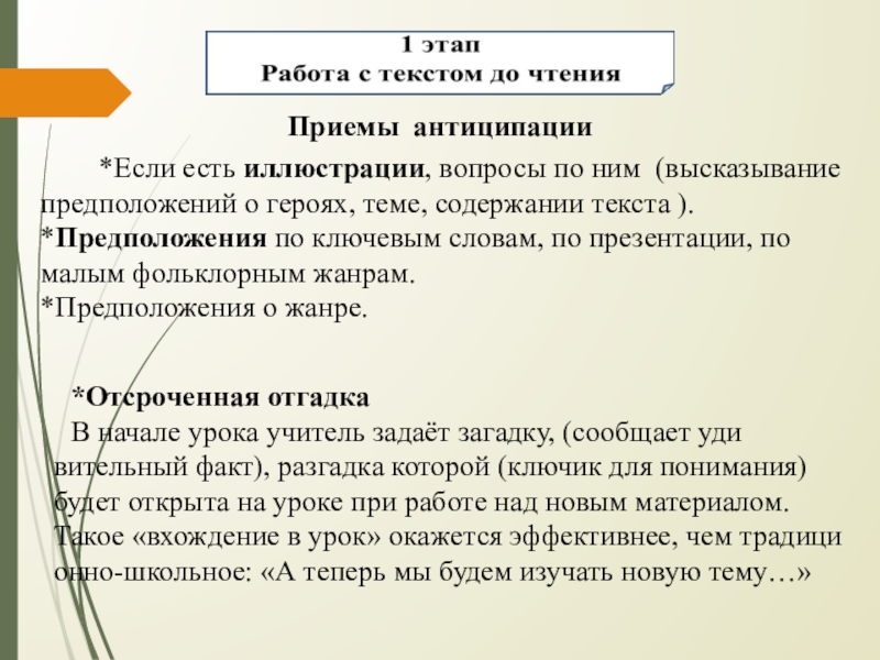 этапа-развитие такого важнейшего читательского умения, как умения предполагать, предвосхищать содержание текста (урока).
