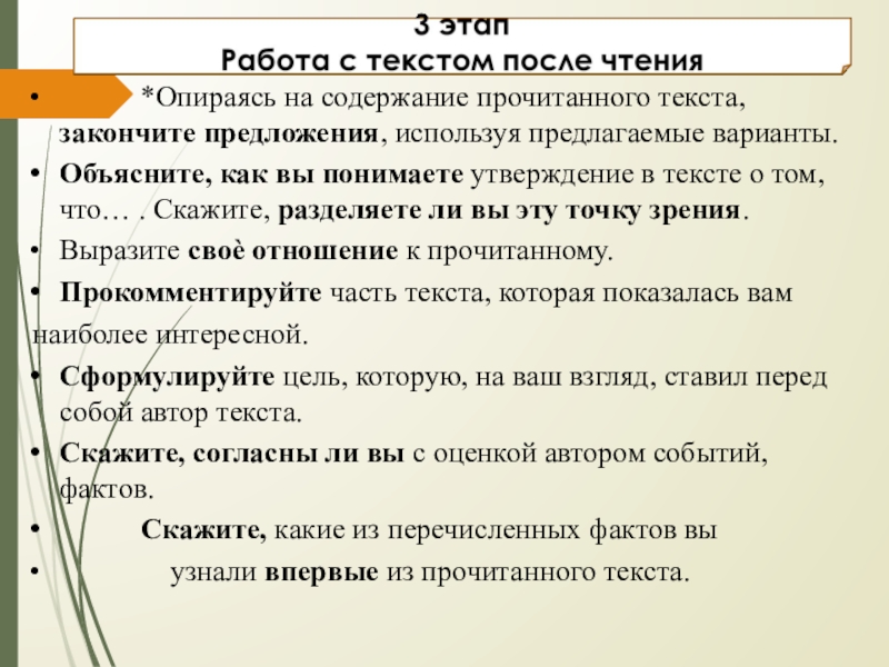 Это позволяет актуализировать уже имеющиеся знания, активизировать познавательную активность учащихся и мотивировать их на дальнейшую работу с текстом.