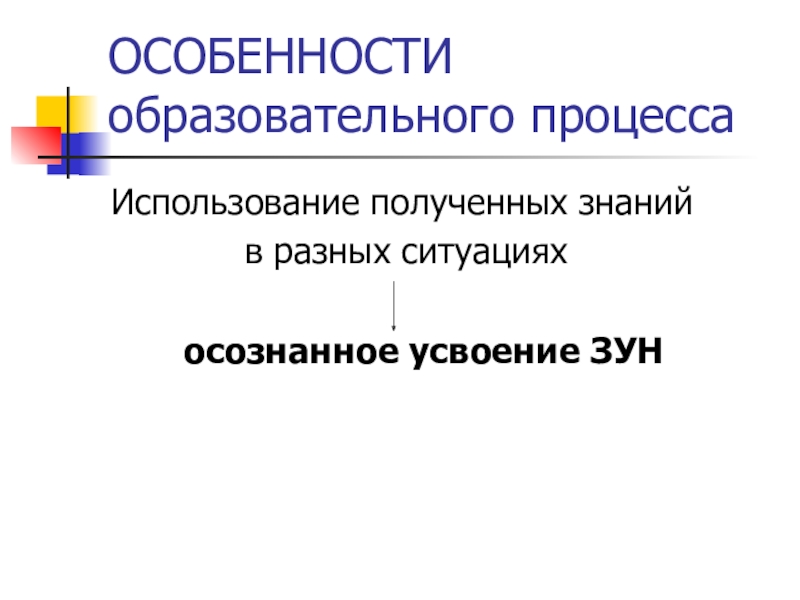 ОСОБЕННОСТИ образовательного процессаИспользование полученных знаний      в разных ситуациях    осознанное