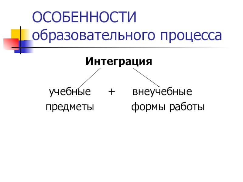 ОСОБЕННОСТИ образовательного процесса         Интеграция   учебные
