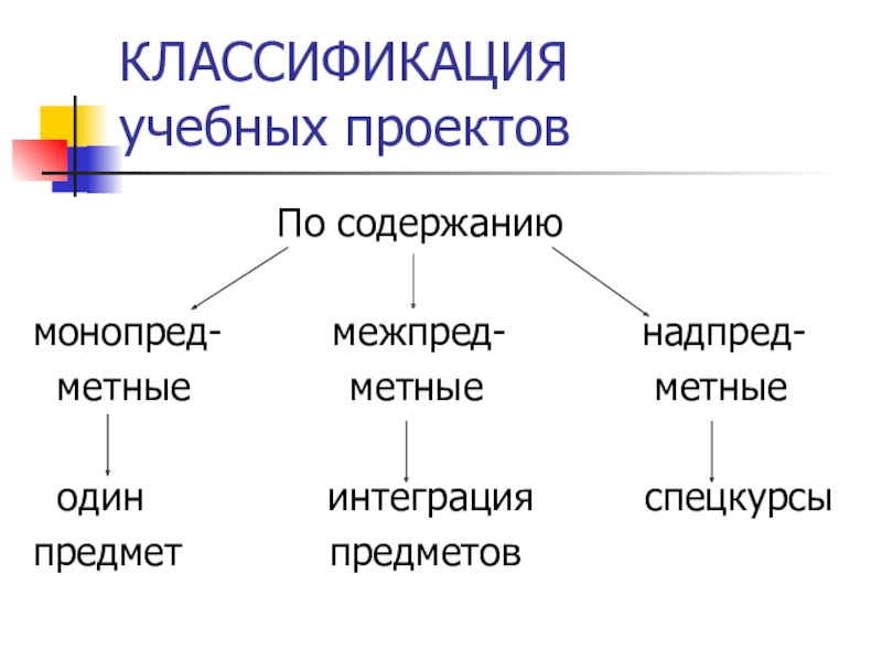 Слайд 13КЛАССИФИКАЦИЯ учебных проектов