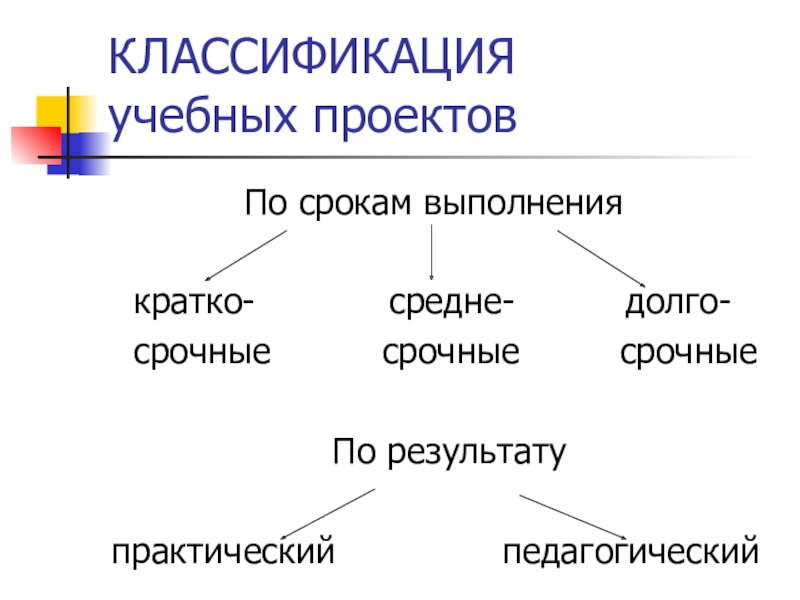 КЛАССИФИКАЦИЯ учебных проектов      По срокам выполнения кратко-