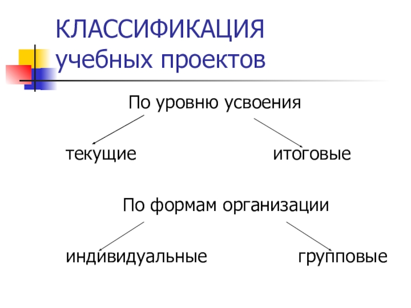 КЛАССИФИКАЦИЯ учебных проектов      По уровню усвоениятекущие