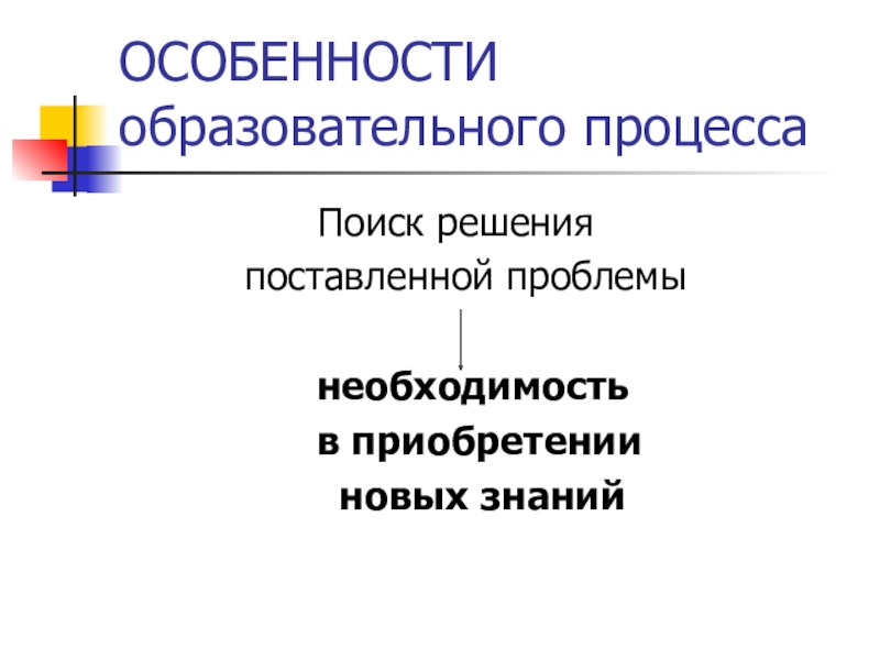 ОСОБЕННОСТИ образовательного процесса        Поиск решения
