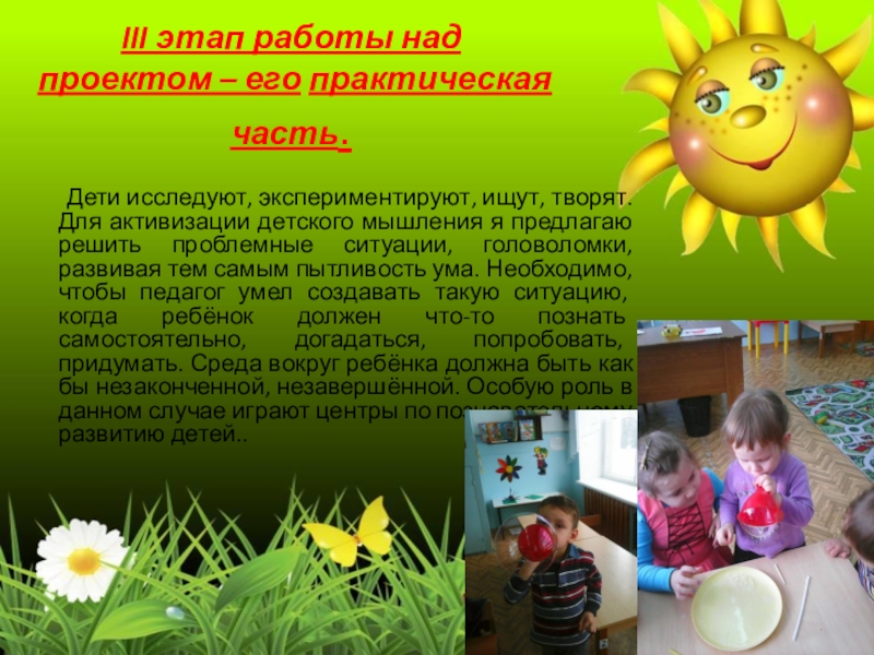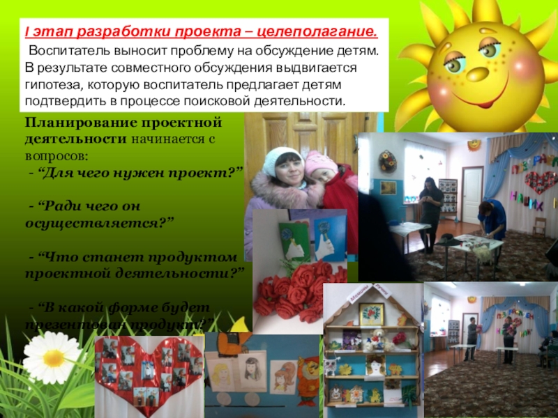 Воспитатель выносит проблему на обсуждение детям. В результате совместного обсуждения выдвигается гипотеза, которую воспитатель предлагает детям подтвердить в процессе поисковой деятельности.