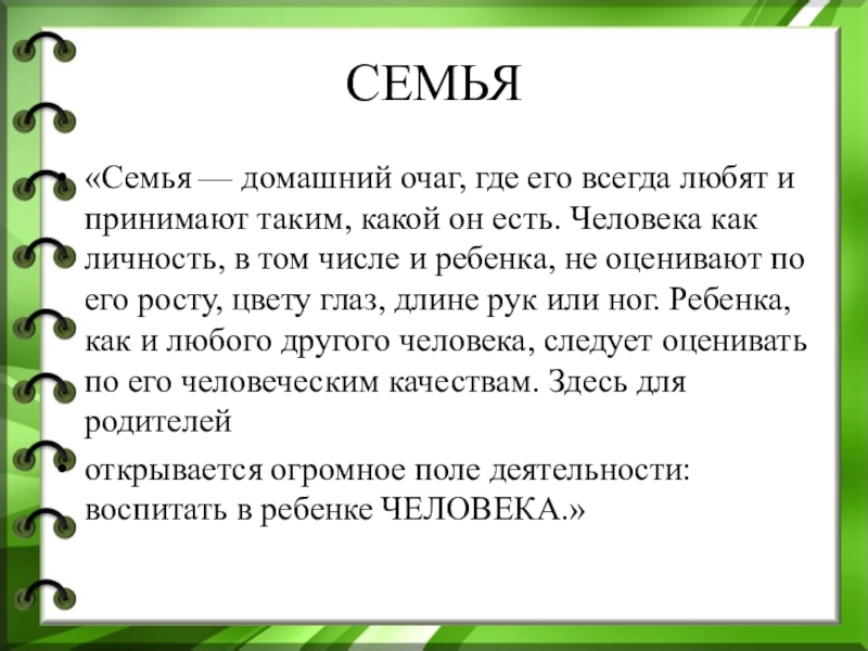 «Семья — домашний очаг, где его всегда любят и принимают таким,