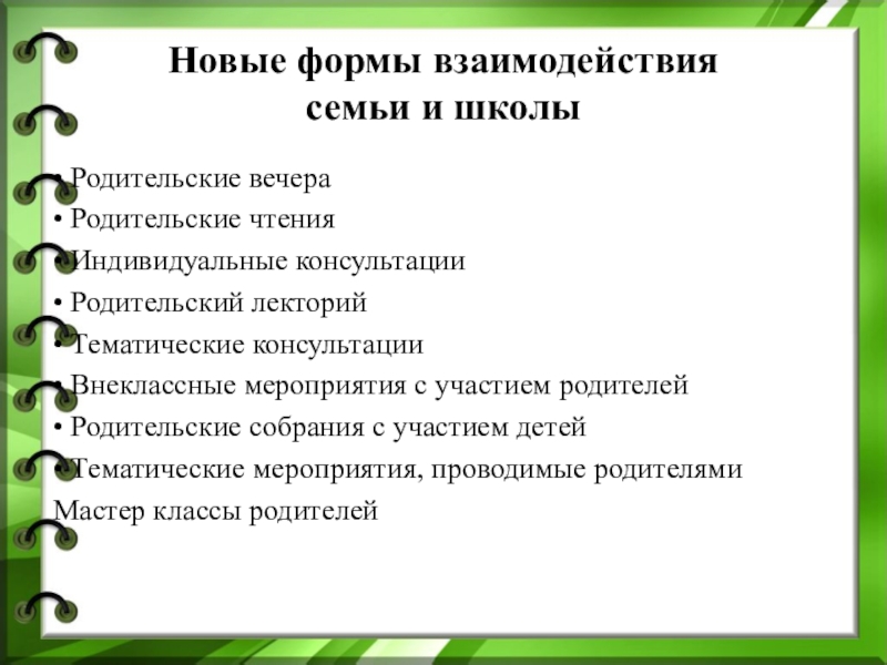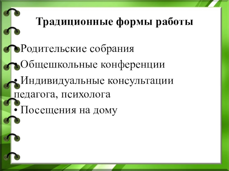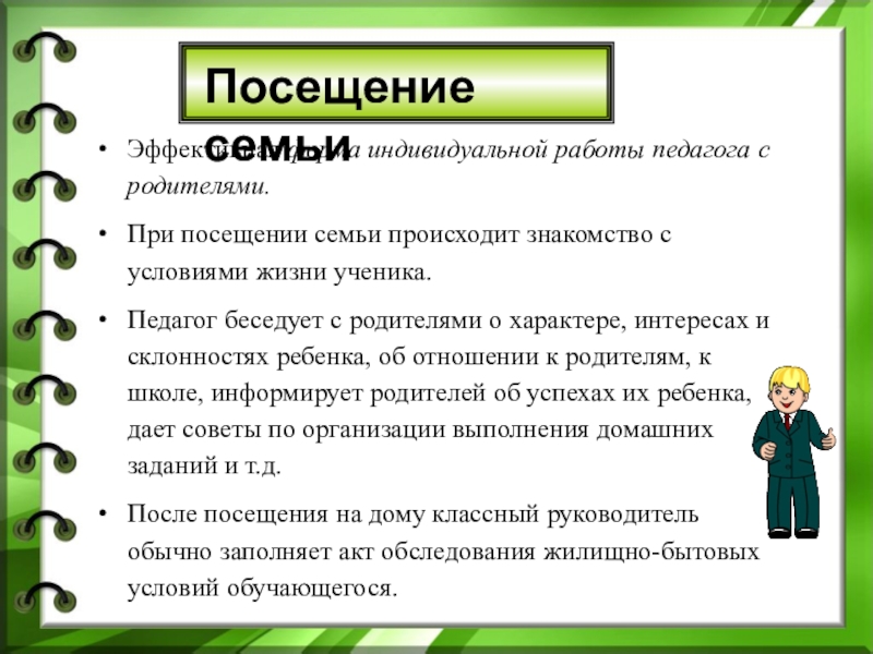 Особенно часто эта форма работы применяется к тем родителям, которые не в состоянии часто посещать школу, много работают или далеко живут.