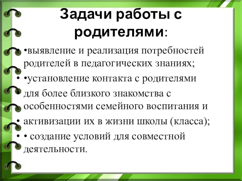 •выявление и реализация потребностей родителей в педагогических знаниях;