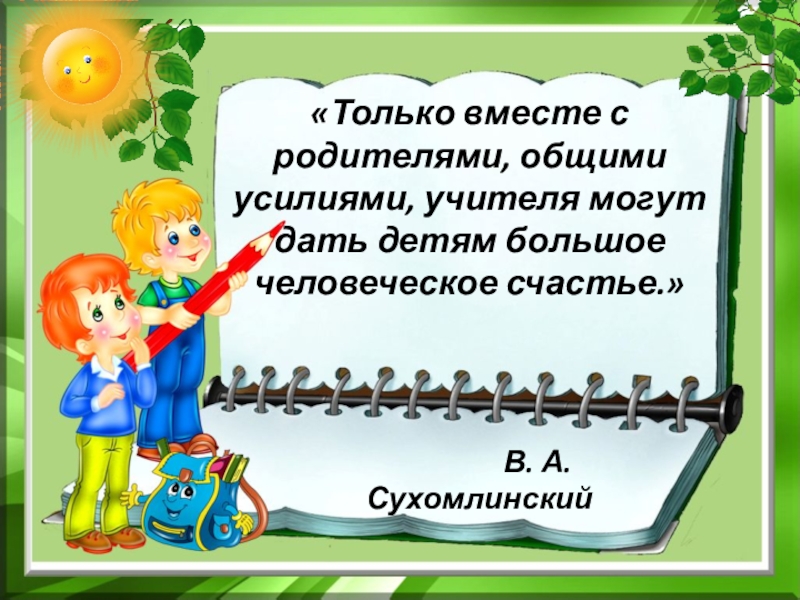 Слайд 4«Только вместе с родителями, общими усилиями, учителя могут дать детям большое