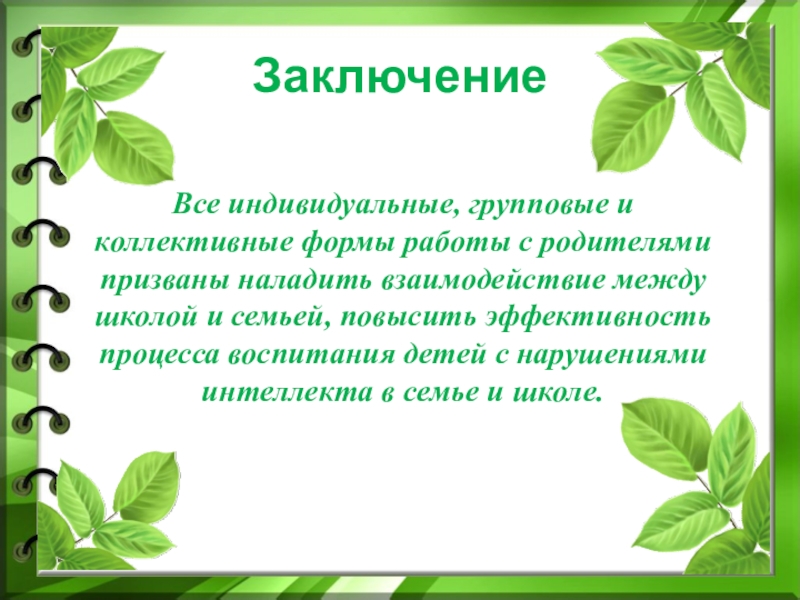 Слайд 37Все индивидуальные, групповые и коллективные формы работы с родителями призваны наладить