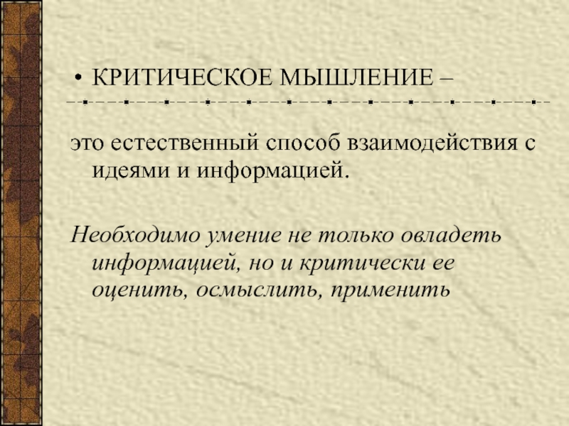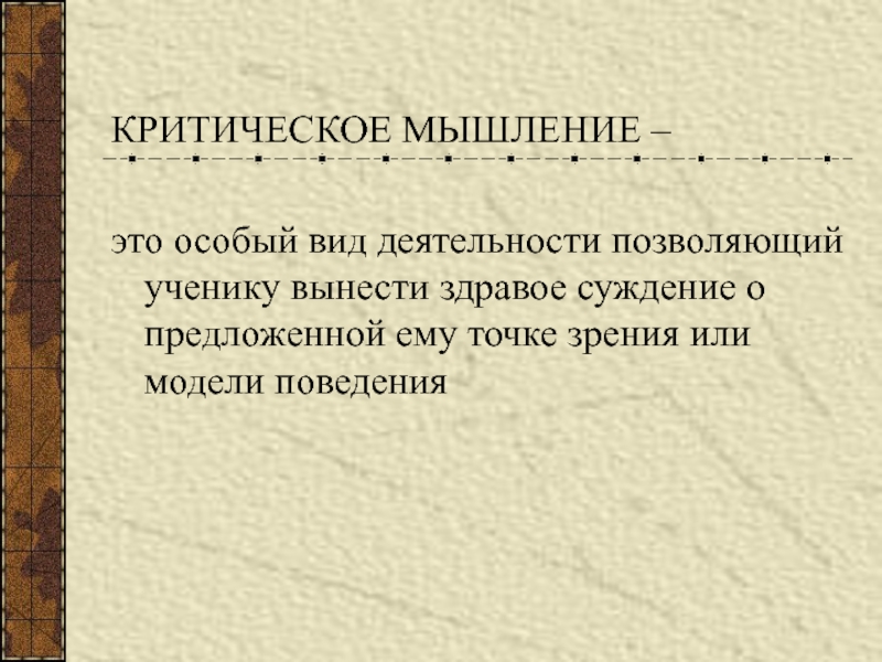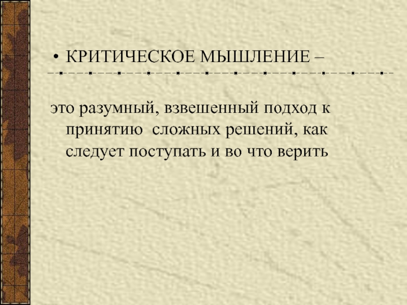 Слайд 2КРИТИЧЕСКОЕ МЫШЛЕНИЕ –