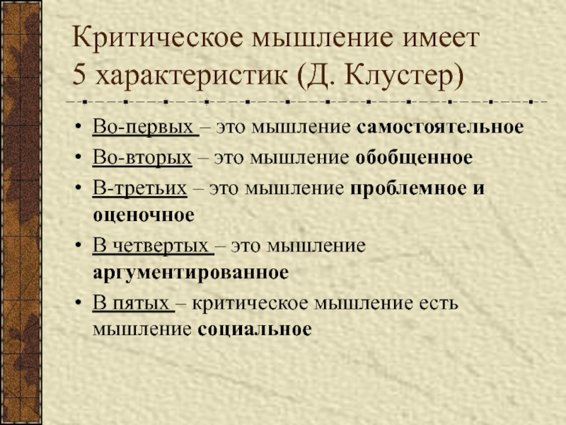 Слайд 5КРИТИЧЕСКОЕ МЫШЛЕНИЕ –