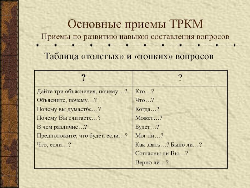 Приемы по развитию навыков составления вопросов