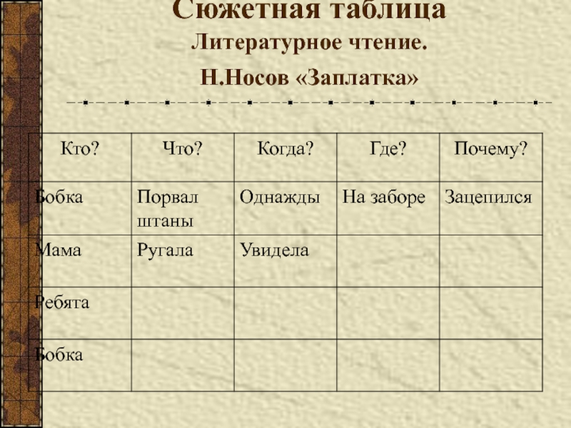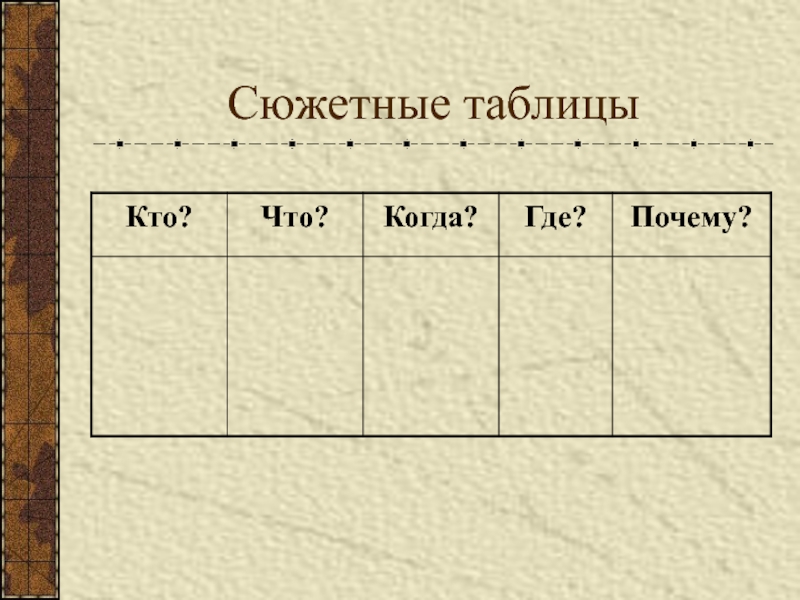 Слайд 37Сюжетная таблица