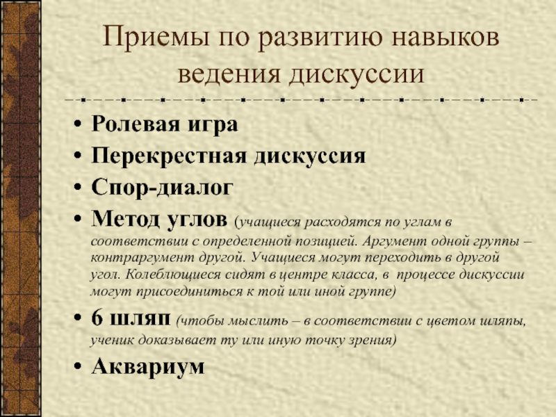 Слайд 45Приемы по развитию навыков ведения дискуссии