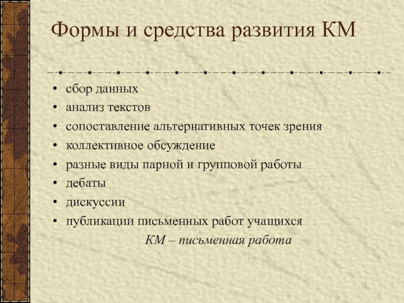 Слайд 14Формы и средства развития КМ