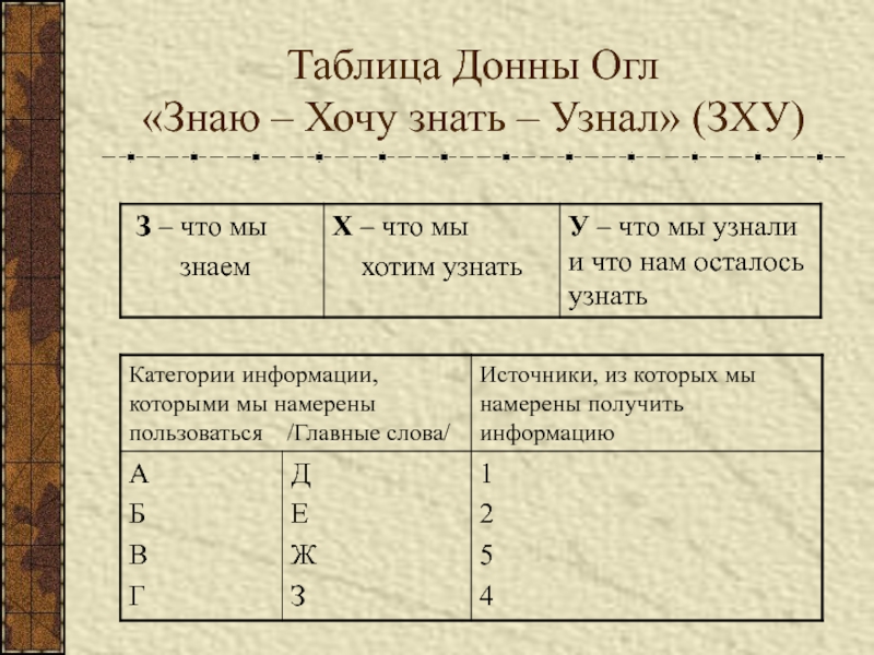 Слайд 31Таблица Донны Огл