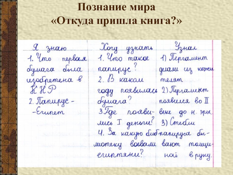 «?» - предназначается для записи различных интересующих ученика фактов и мыслей